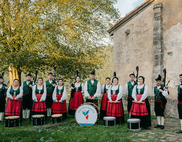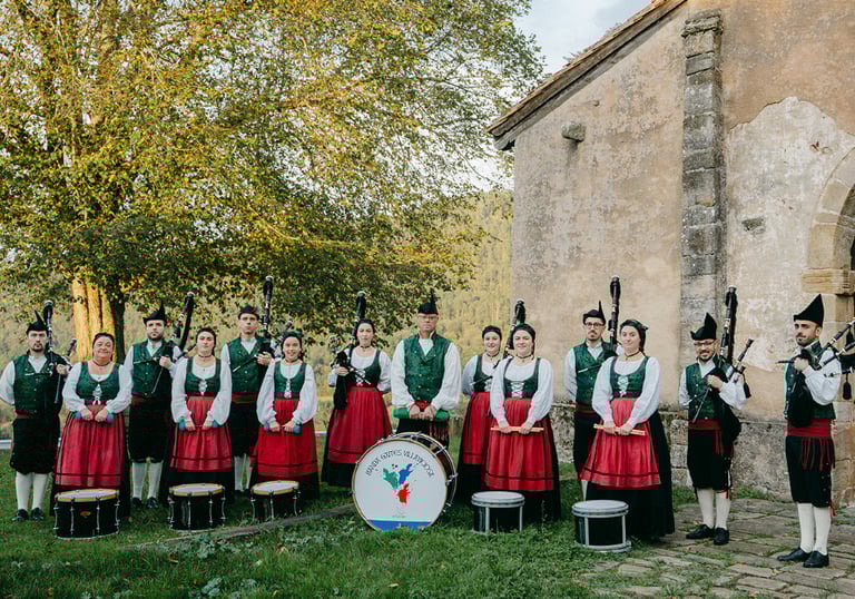 ¿Busques daqué qu'emocione, qu'impacte y que dexe buelga? La banda de gaites al completu ye la rempuesta. Más de 15 músicos ente gaites y percusión, enllenando de fuerza y enerxía cualquier actu: bodes, desfiles, conciertos, fiestes grandes, festivales, inauguraciones...